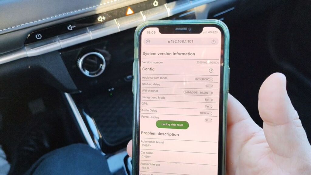 Alles werk goed, sonder enige probleme, en met 'n vloeibaarheid vergelykbaar met die bedrade weergawe. Die adapter se behuising is ultrakompak en liggewig, ontwerp om nie die middelkonsole-area te oorlaai nie. Die glansende afwerking maak dit onopvallend van buite en geskik selfs vir minimalistiese interieurs. Verder beveel BINIZE aan om na te gaan vir enige beskikbare firmware-opdaterings vir die toestel en dit toe te pas, hoewel dit in my geval nie nodig was nie: die eenheid is reeds dadelik gebruik, sonder die behoefte aan 'n opgradering. Om die opdaterings uit te voer, sodra jy jou slimfoon aan die dongle gekoppel het, gaan eenvoudig na 192.168.1.101.