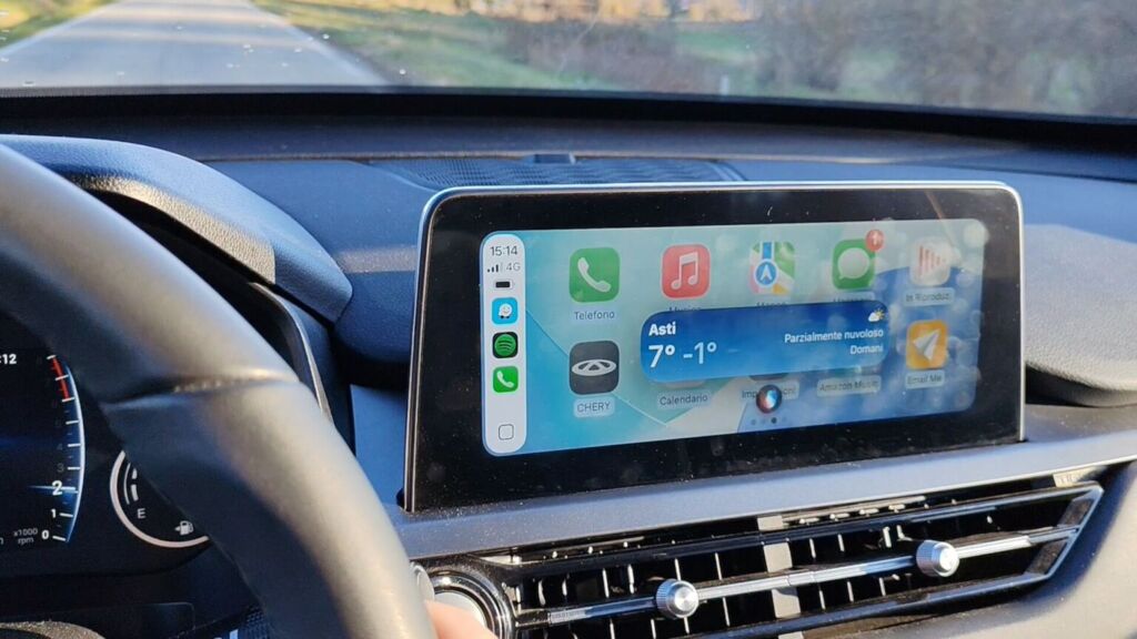 Paring is 'n briesie. Sodra jy die bykomstigheid in jou motor se CarPlay-poort geplaas het (die voertuig moet versoenbaar wees met bedrade CarPlay, wat beteken dat die poort geaktiveer moet wees vir data-uitruiling, nie net laai nie), koppel eenvoudig aan die dongle via Bluetooth. Na Bluetooth-paring skakel die toestel outomaties oor na Wi-Fi vir CarPlay/Android Auto. Nadat jy ongeveer 10 sekondes gewag het, verskyn CarPlay (of Android Auto) op die motor se skerm.